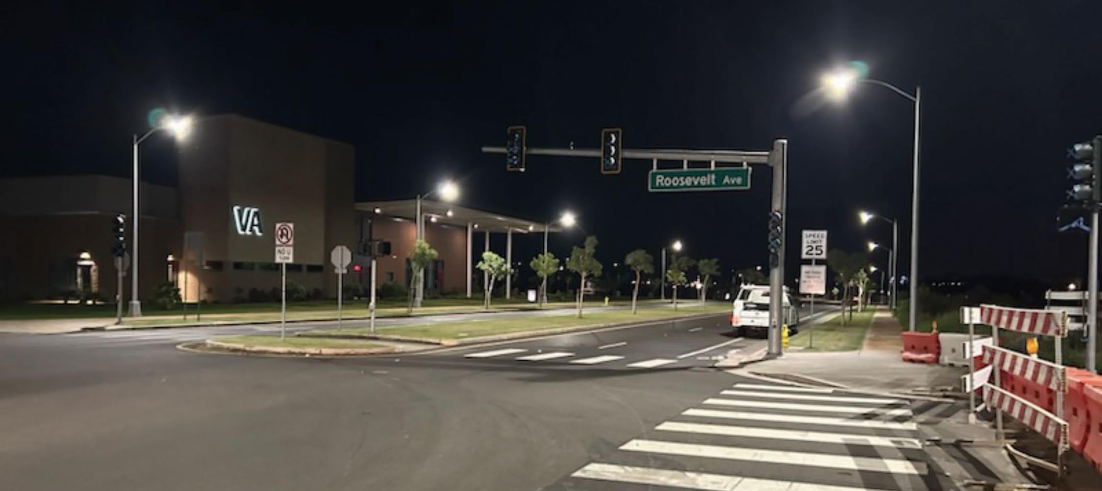 The mauka portion of FDR Avenue was opened to traffic in December, after streetlights were turned on. This segment of roadway, from Copahee Avenue to Kamokila Boulevard, is now four lanes wide.